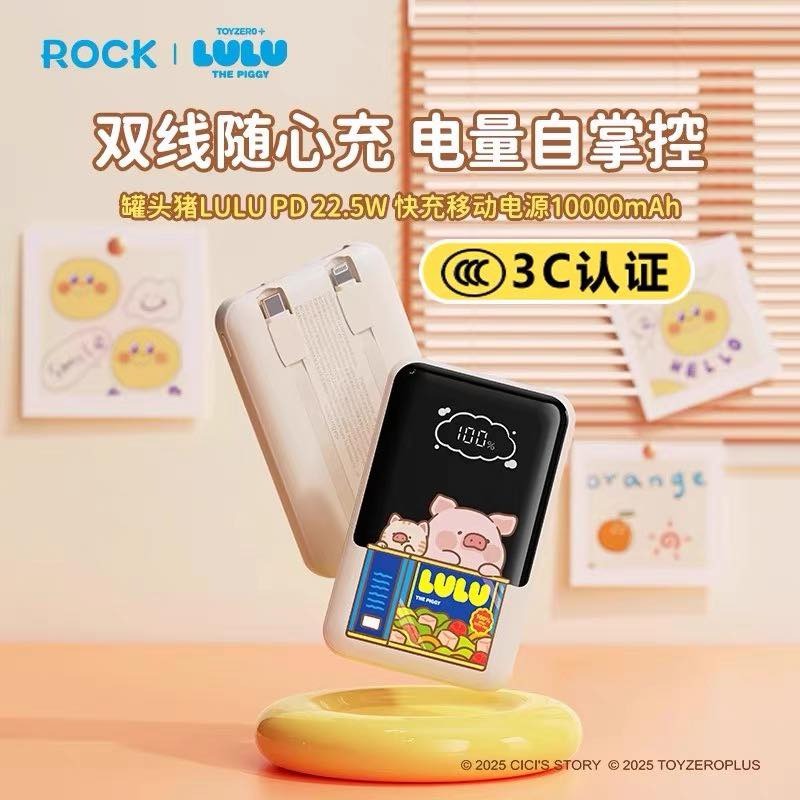 Original ROCK x PIGGY THE LULU PD 22.5W Fast Charging Power Bank 1000mAh LULU猪新款双线10000毫安CCC国标识移动电源